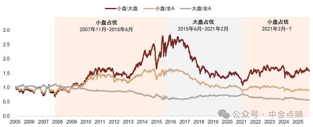 注:小盘/大盘为中证1000和沪深300的比值(重新定基)